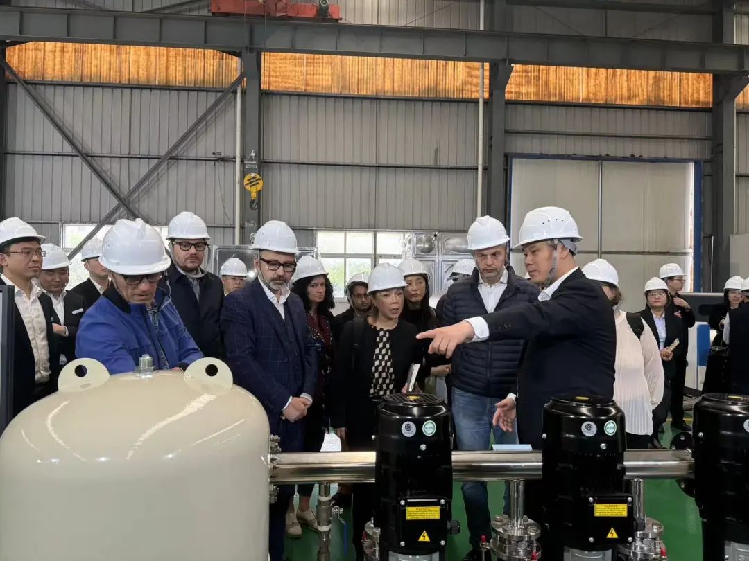 市長斯蒂凡諾先生一行先后參觀我司的展廳、二次供水設(shè)備生產(chǎn)車間,了解二次供水設(shè)備的運(yùn)用領(lǐng)域及生產(chǎn)工藝,在總經(jīng)理陳科宇的介紹下,市長斯蒂凡諾先生一行對二供產(chǎn)品精細(xì)化的生產(chǎn)工藝為之贊嘆,同時也對我司生產(chǎn)車間的環(huán)境管理進(jìn)行夸贊。