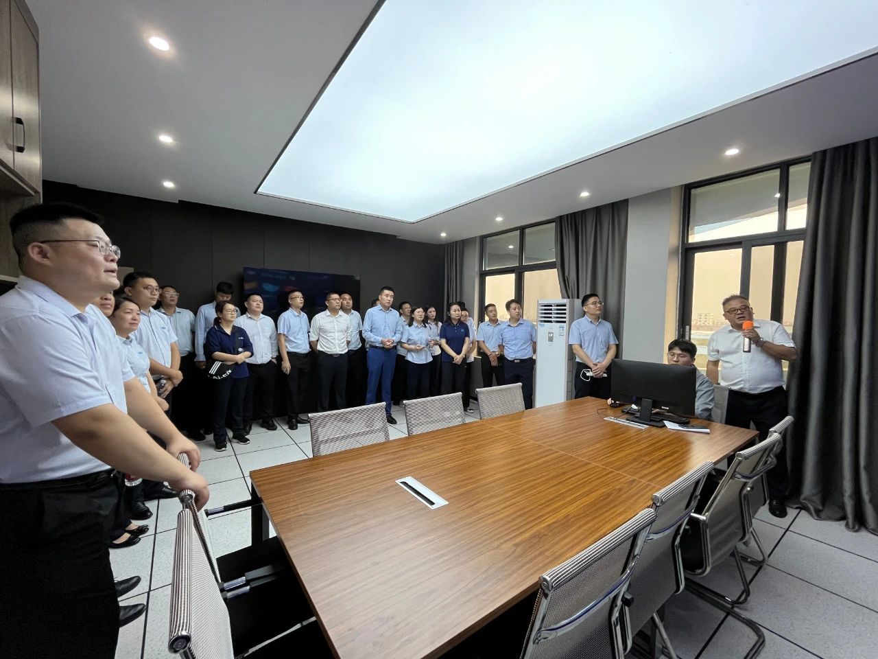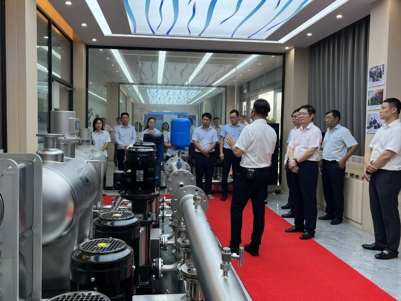 集團郭總在我司講解團的陪同下,帶領集團年輕干部培訓班成員先后參觀了我司機械、電氣生產車間、成品庫、二次供水設備展廳、二次供水監(jiān)控管理平臺及數字化智慧水務平臺。